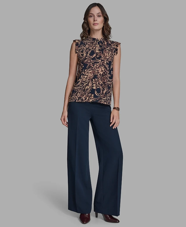 Karl Lagerfeld Paris Petite Printed Mock Neck Blouse