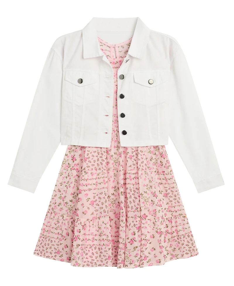 Bcx Girls' 7-16 Long-Sleeve Trucker Jacket and Dress, 2-Piece Set