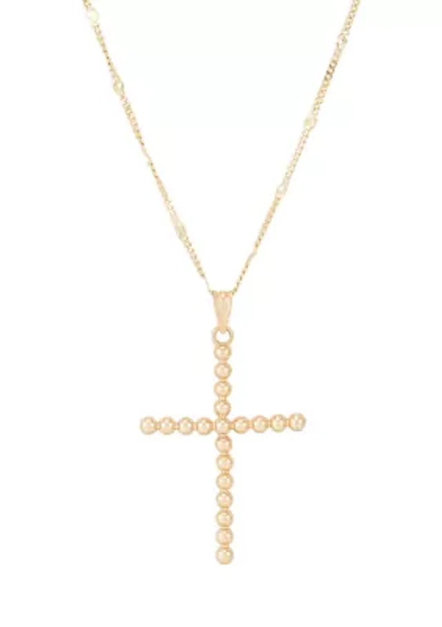 Bead Cross Pendant Necklace with 18" Rope Chain in 10K Yellow Gold