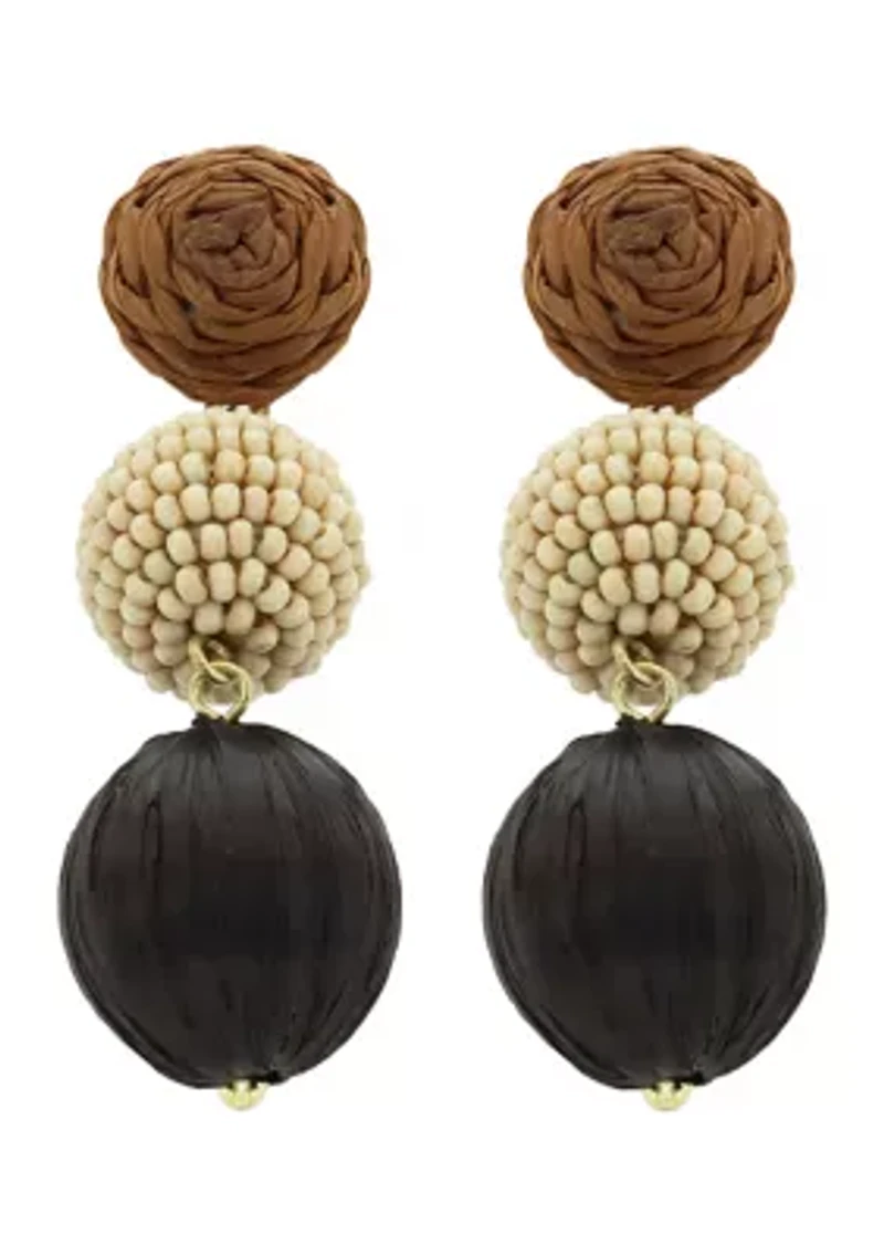 Variegated colors and textures run rampant on these charming ball drop earrings from Belk. Post back earring Polished finish Imported Belk Exclusive Product Specifications 2" L Material & Care Stainless steel Raffia, metal Clean with a soft cloth