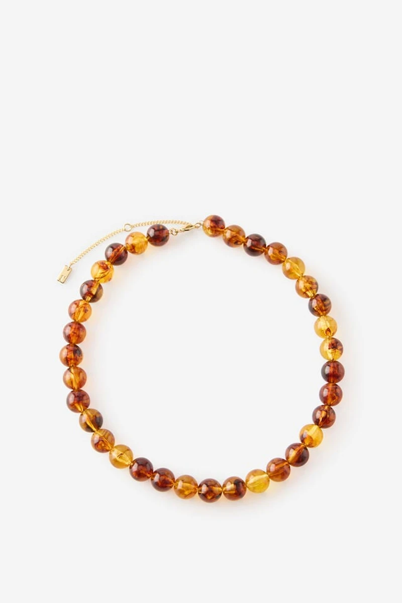 Simple, stylish, and made for everyday wear. The Beaded Necklace features warm caramel swirl beads in a round shape. With beaded detail, an extender chain for adjustable length, and a secure lobster clasp, it's an easy way to add texture and colour to your look. Layer it with other pieces or let it shine solo.