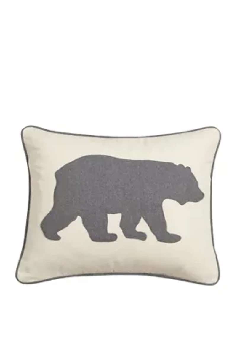 A perfect decorative accent for your bed or couch, the Eddie Bauer Bear Throw Pillow features a graphic silhouette of a bear in profile cut from felt and appliqued to the face. This ivory cotton twill pillow is corded with a contrast color to perfectly match any bedding set or couch. Imported Product Specifications 16 in L x 20 in W Material & Care Cotton Machine washable