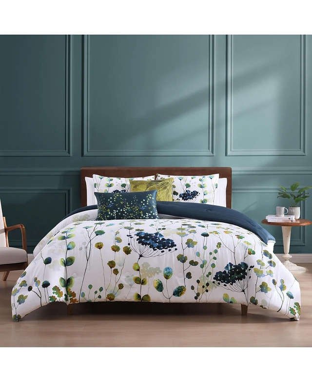 Bebejan Blue Blossom Bedding 220 Thread Count 100% Cotton Sateen 5 Piece Queen Size Reversible Comforter Set