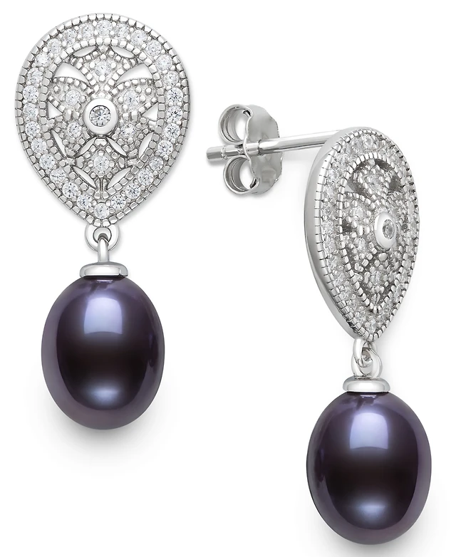 Belle de Mer Cultured Freshwater Peacock Black Drop Pearl (8-9mm) Earrings in Sterling Silver