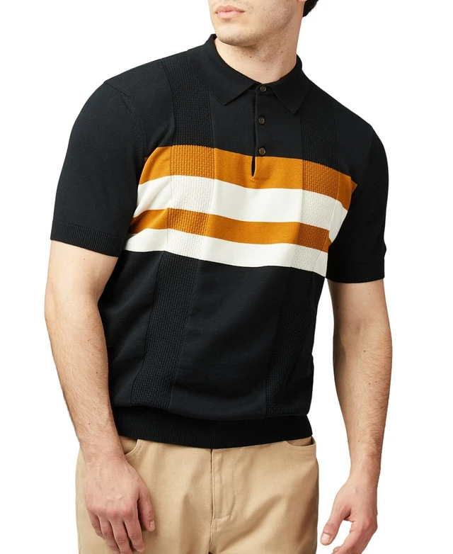 Ben Sherman Men's Jacquard Stripe Short Sleeve Polo Shirt