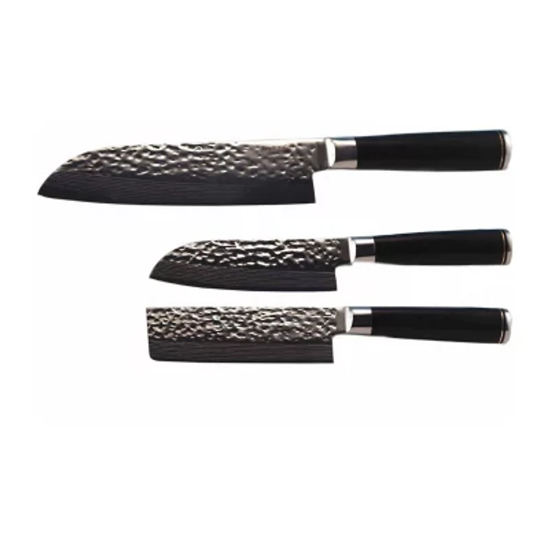 Included: 1 5 Inch Santoku Knife(ves), 1 6 Inch Cleaver(s), 1 7 1/2 Inch Chefs Knife(ves)