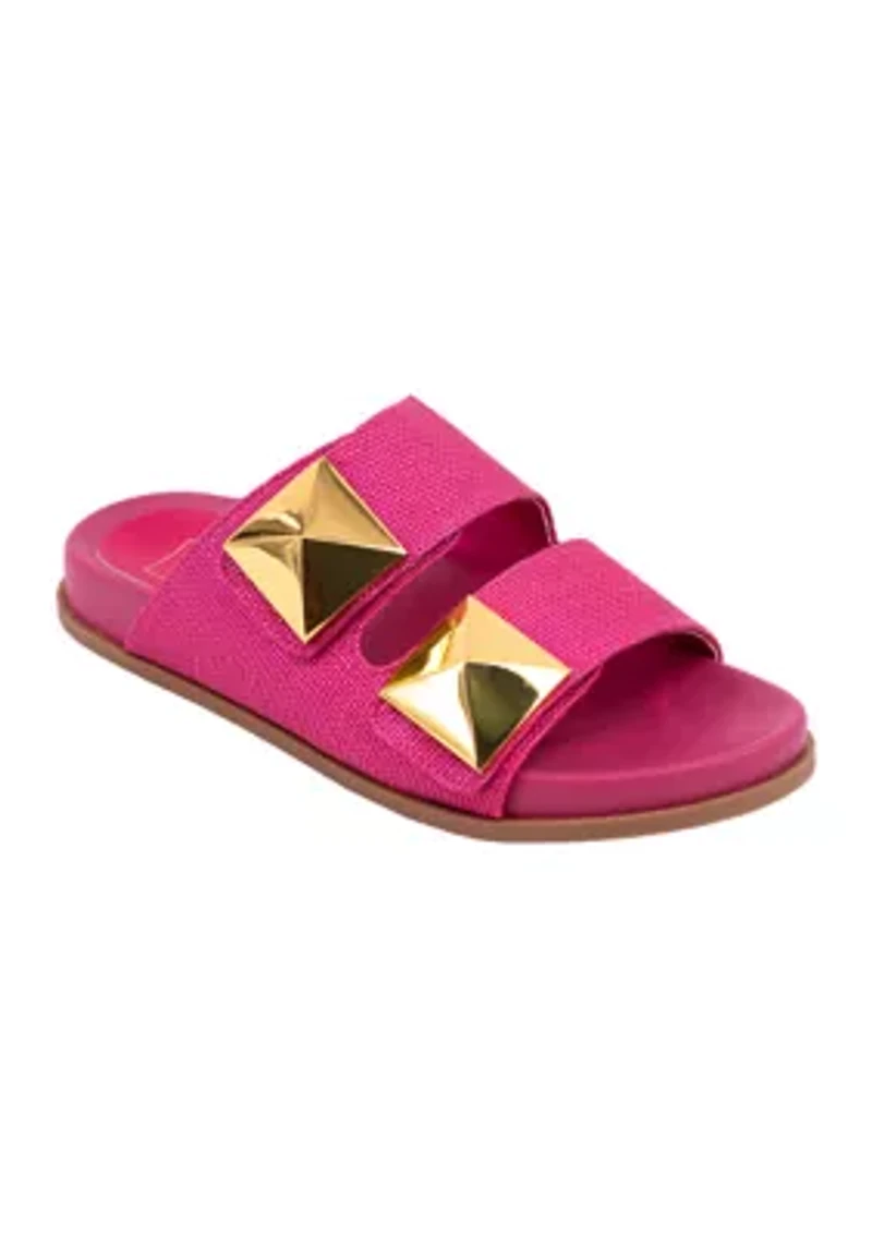 These sandals from SHUSHOP are a must-have for any fashion-forward woman. With their slip-on design, they're easy to wear and comfortable all day long. The classic shaped low heel adds a touch of sophistication, while the woven fuchsia faux leather upper is sure to turn heads. Pair these sandals with your favorite dress or jeans for a look that's both stylish and effortless. Slip-on Imported Product Specifications 1" heel Medium width Material Faux leather