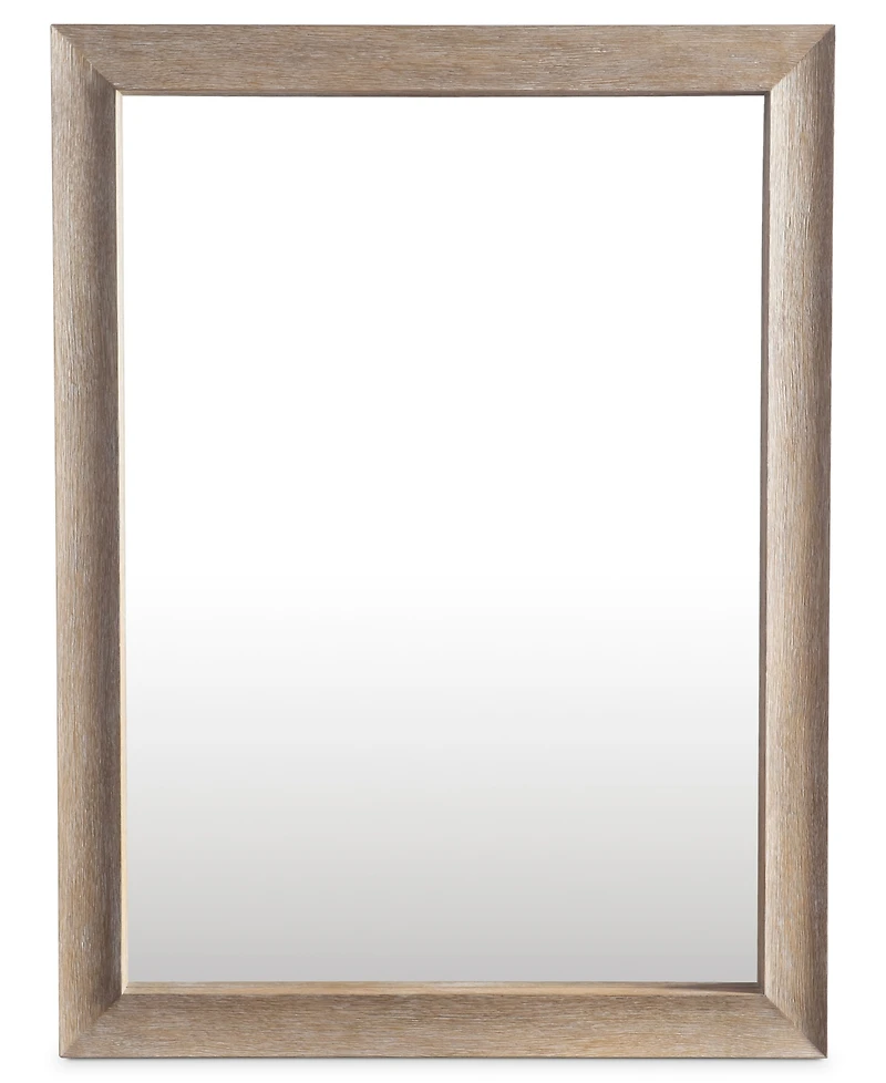 The Loggia mirror takes sleek lines and gives them a modern rustic style in textured wood. The frame curves gently towards the glass while the textured wood is finished in Aria.