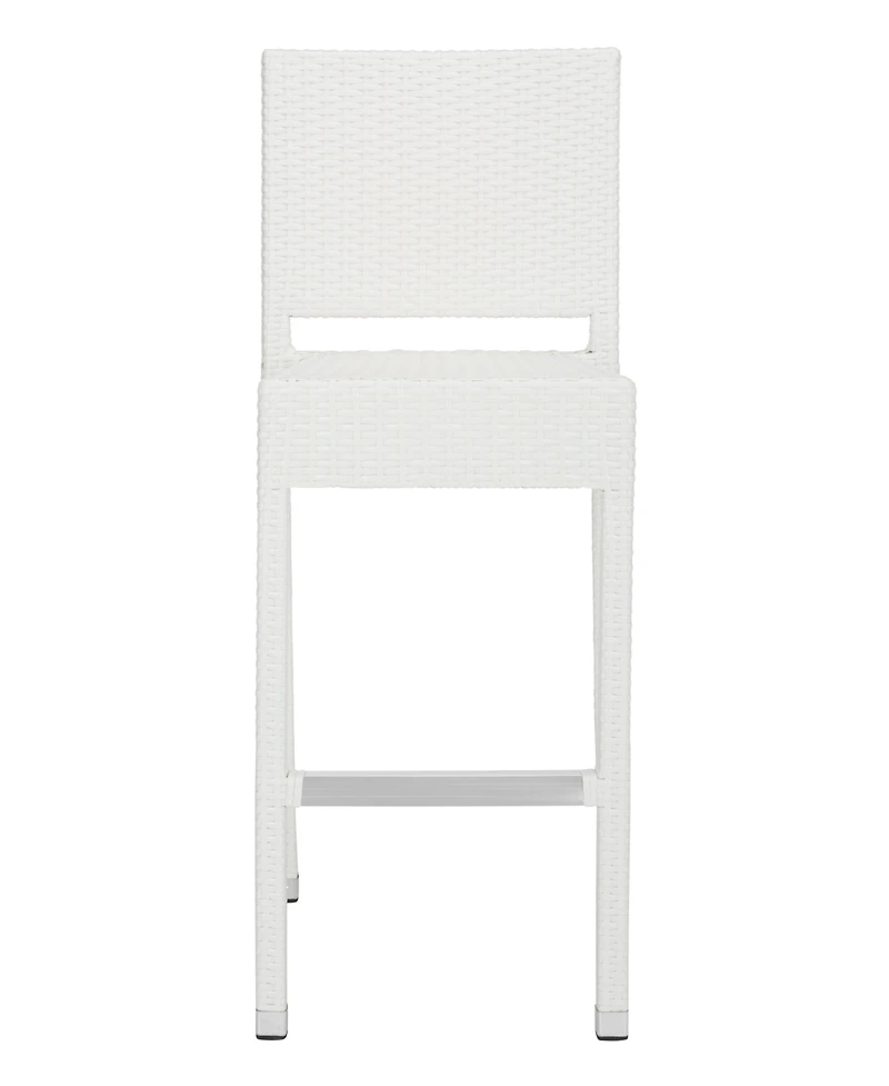 A perfect balance of design and utility, the Bethel indoor-outdoor bar stool by Safavieh looks as chic at the kitchen island as it does on the patio. Crafted of easy-care grey wicker with an aluminum frame, and trimmed with contrasting footrest and caps in silver, Bethel is transitional in style.