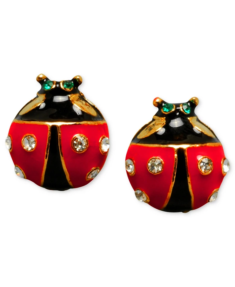 Cheerful ladybugs look cute as a button with crystal accents on these Betsey Johnson stud earrings. Crafted in mixed metal. Approximate width: 2/5 inch.