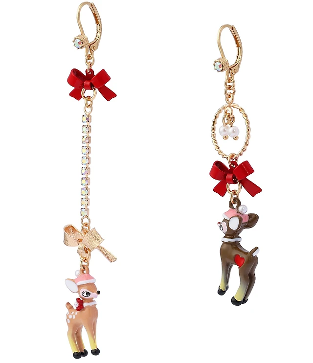 Betsey Johnson Santa Baby Christmas Reindeer Bow Mismatched Drop Earrings
