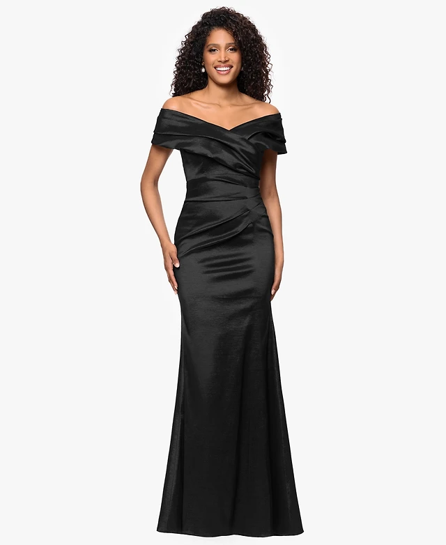 Betsy & Adam Women's Long Off-The-Shoulder Dress