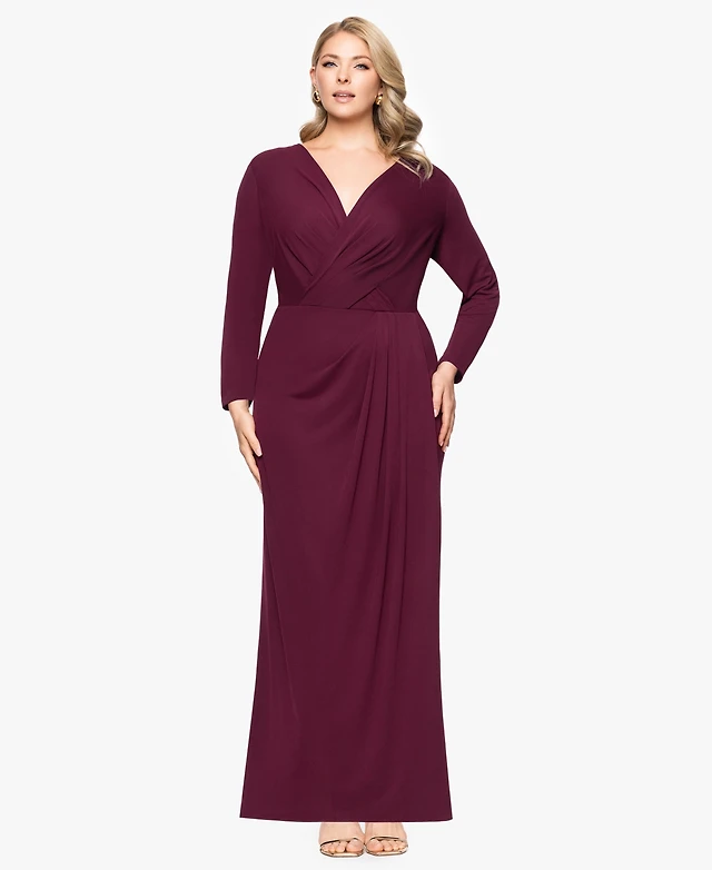 Betsy & Adam Plus Long-Sleeve Matte Jersey Dress
