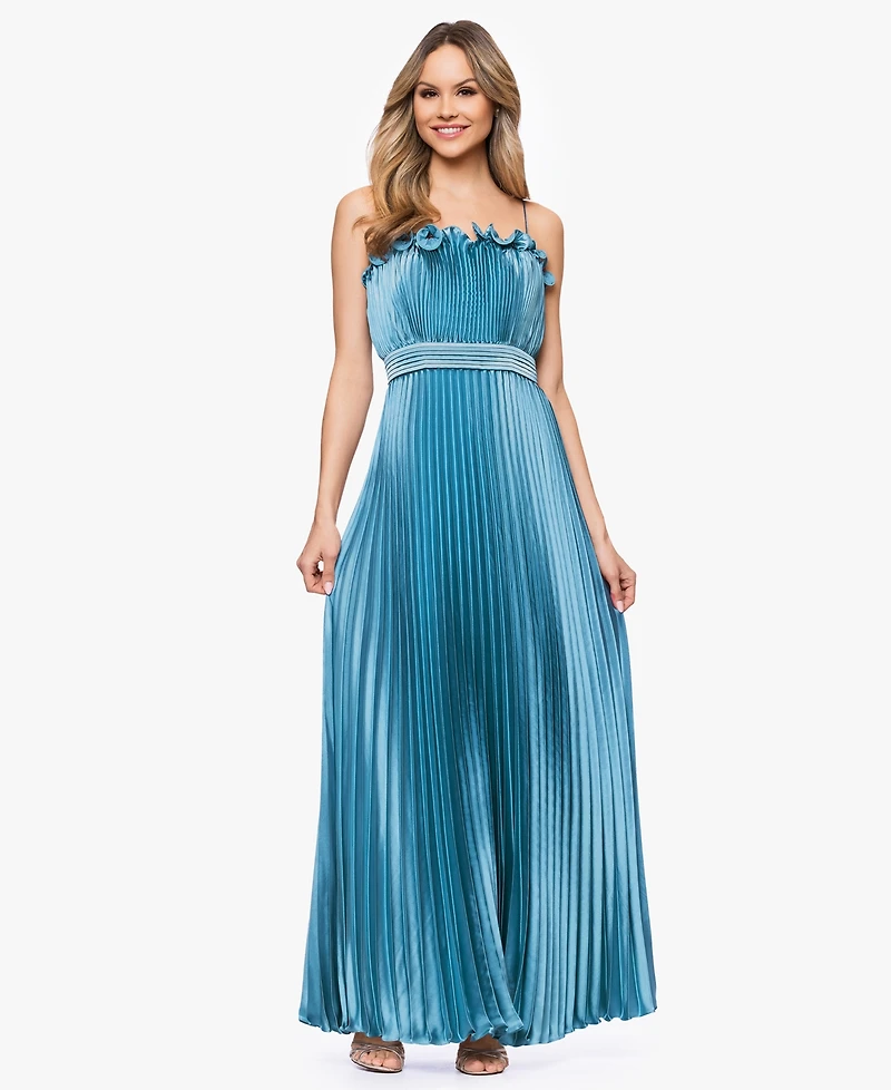 Betsy & Adam Women's Spaghetti Strap Pleated Ball Gown