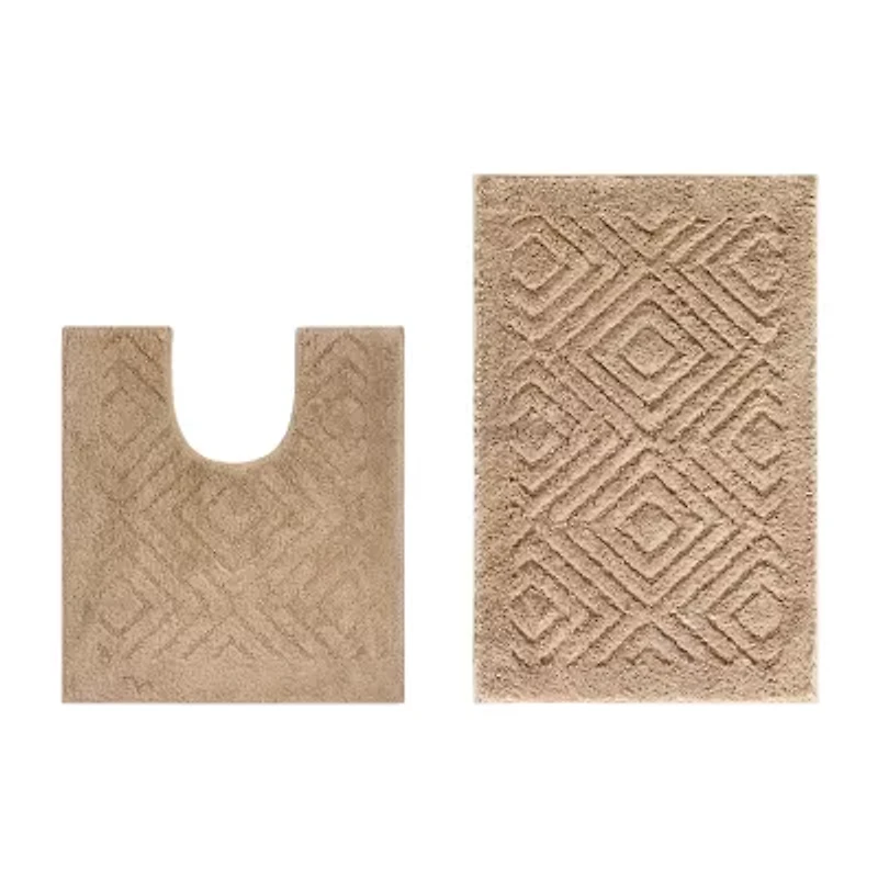 bath rug set. Made with premium-quality cotton, the diamond style tufted bath rugs are highly absorbent and durable which makes them ideal to use. The plush and soft texture of the cotton bath rug provides a comfortable underfoot. This luxury bath rug can be machine washed with ease and it does not lose its color even after multiple washes. This stunning trier collection is made of 100% cotton and is tufted into beautiful diamond pattern. It is soft, plush, thick and super absorbent. This bath rug set is made with precision and its distinctive tufting provides for elevated patterns which are very soft to the touch. These comfortable rugs are foldable, making them easy to store in compact spaces. With the anti-skid latex backing, the bath rug is slip-resistant. Each set contains two rugs of different sizes. This collection of bath rugs is