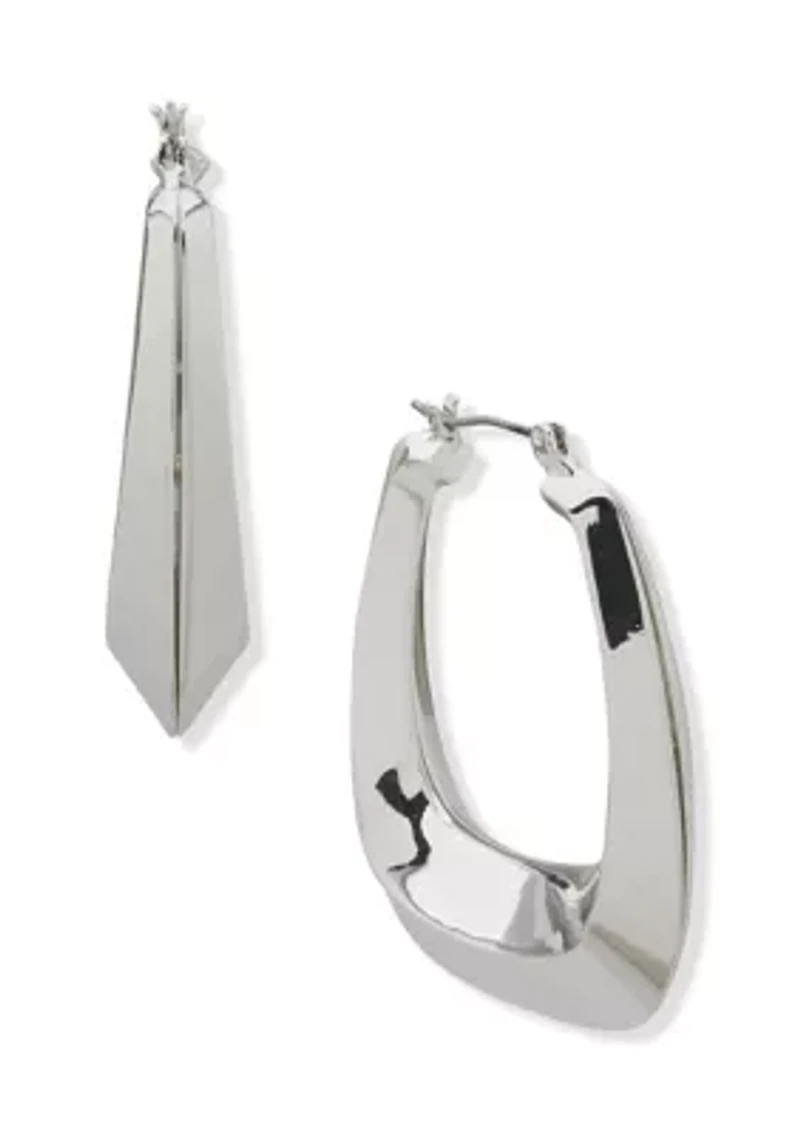 Elevate your everyday style with these earrings from Nine West. Featuring a sleek beveled design that catches the light beautifully, these hoops add a touch of modern shine to any look—perfect for both casual wear and dressier occasions. Click top closure Polished finish Imported Material & Care Silver-tone metal Clean with a soft cloth