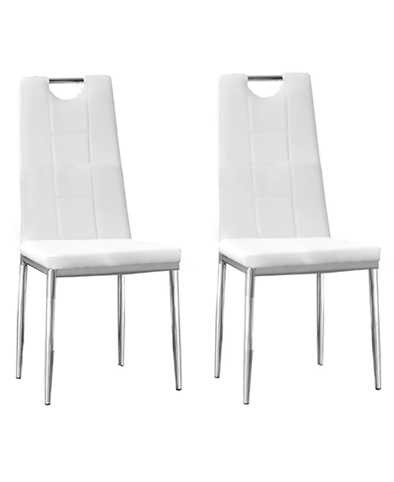 Minimalist, simple and modern. If you want a more simple style in your home that will not take up too much space, these side chairs are perfect and easy to match with any modern and contemporary dining table. Chairs are upholstered in faux leather and legs are made of chrome.