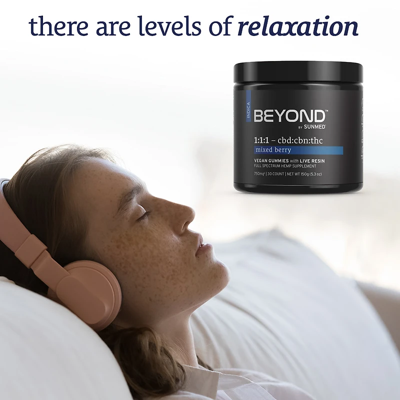 Unwind on a new level with Sunmed’s Beyond 1:1:1 Indica Live Resin Gummies. These best-sellers have strong, relieving sensations to help you drift off with full-body relaxation.