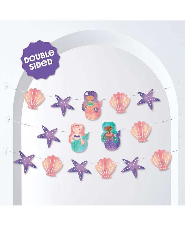 Big Dot of Happiness Mermaid Garland Banner, 30 Feet of Cord, 15 Double-Sided Mermaid-Themed
