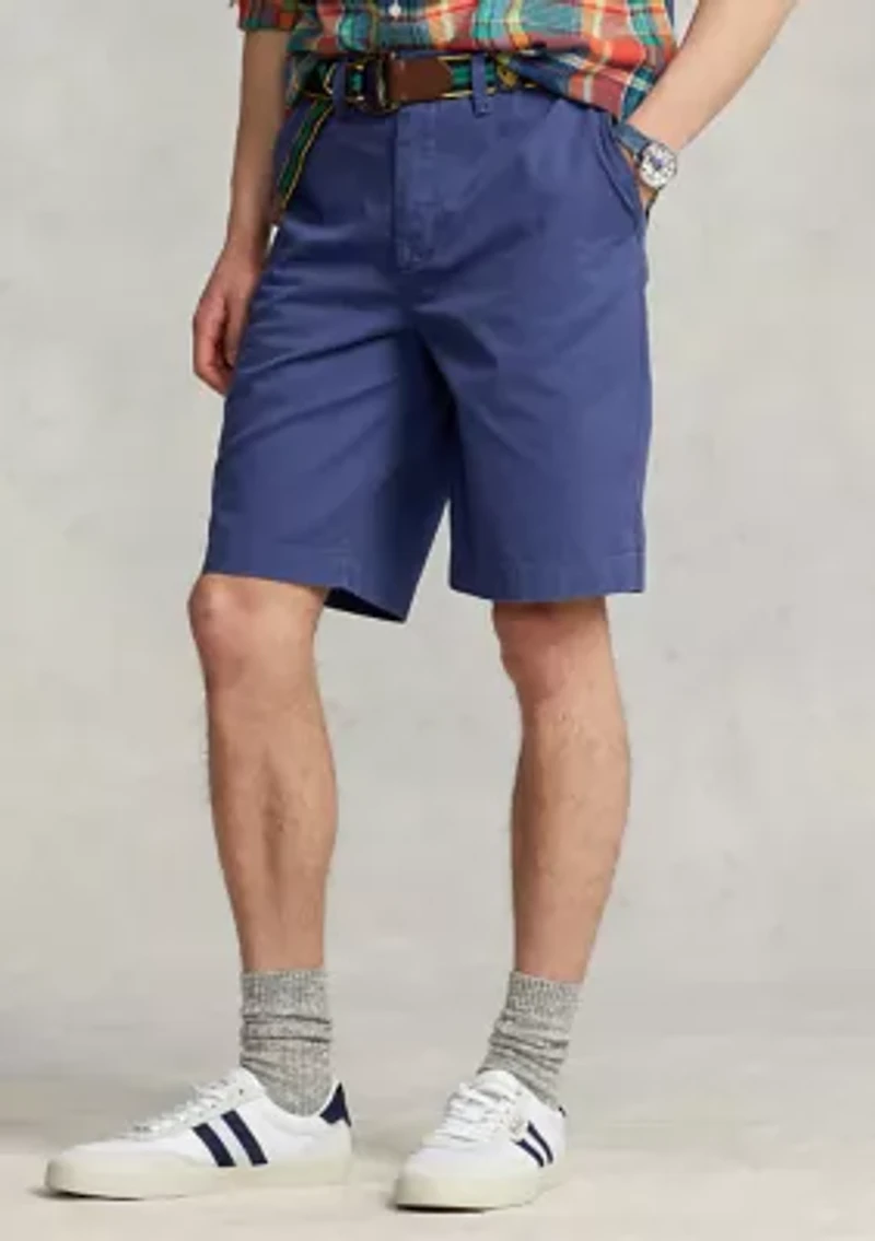 This rugged take on the classic chino short is crafted from soft cotton and finished with Polo Ralph Lauren's iconic embroidered Pony. Zip fly with a buttoned closure Two front angled pockets Right hip coin pocket Two back buttoned pockets Classic Fit: sits at the waist Eased through the leg Signature embroidered Pony above the back right pocket Imported Product Specifications Size 46W has a 13.25 in rise All Big sizes have a 10.25 in inseam, All Tall sizes have an 11.25 in inseam Material & Care Cotton Machine washable