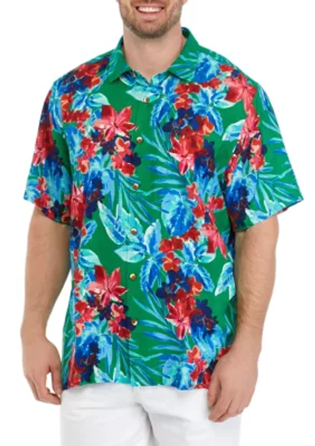 Big & Tall Dockside Tropical Print Button Down Shirt