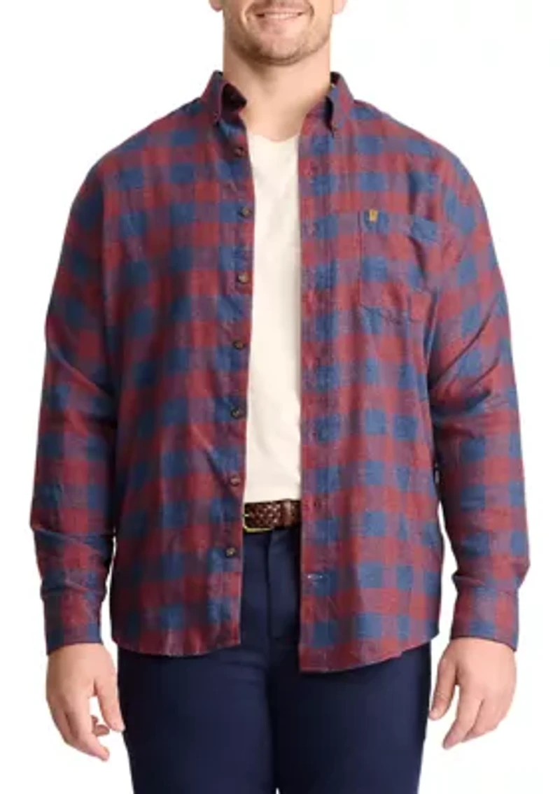 The Stratton Flannel from IZOD is a structured piece with wicking properties. With two sides brushed & wicking finish Navy signature tape inserted at inside collar band IZOD logo tab at the chest pocket Contrast navy thread at top cf button hole & stitch Button-down collar and spade pocket detail Classic fit with regular length Plaid pattern Imported Material & Care Cotton, polyester Machine washable