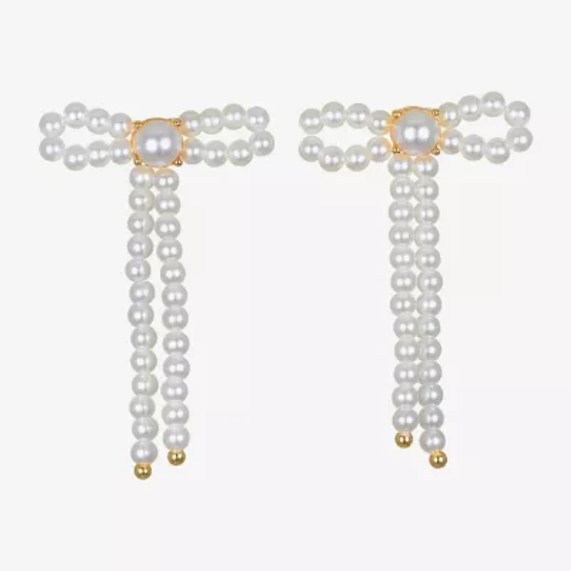 Bijoux Bar Delicates Gold Tone Womens Simulated Pearl Bow Drop Earrings