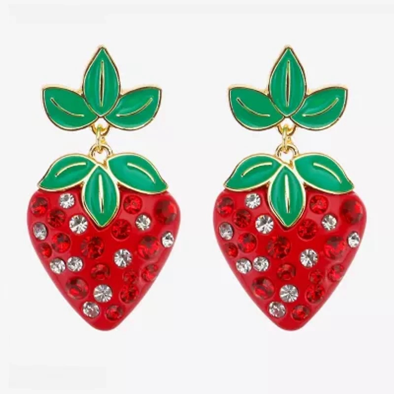 Bijoux Bar Gold Tone Strawberry Womens Drop Earrings