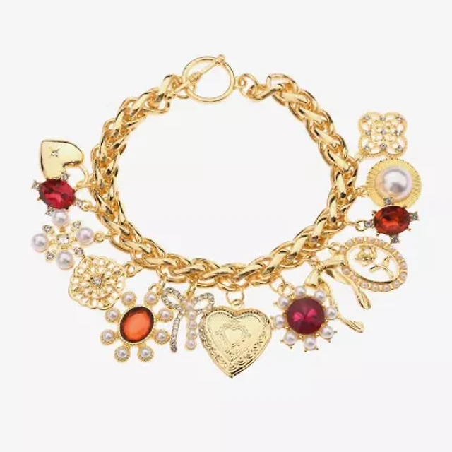 Bijoux Bar Gold Tone Womens Glass Cherries Charm Bracelet