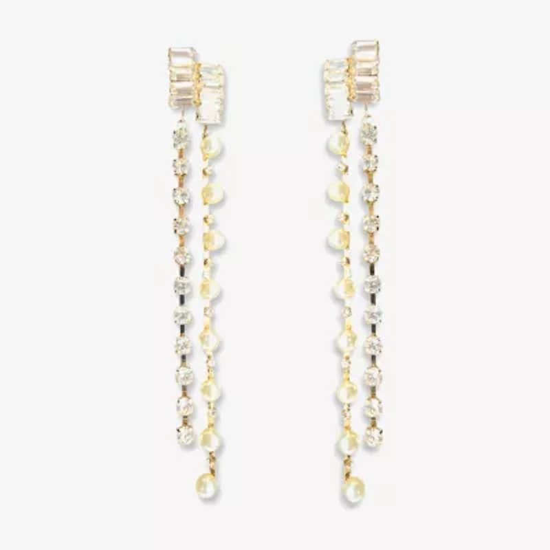 Bijoux Bar Linear Womens Simulated Pearl Drop Earrings