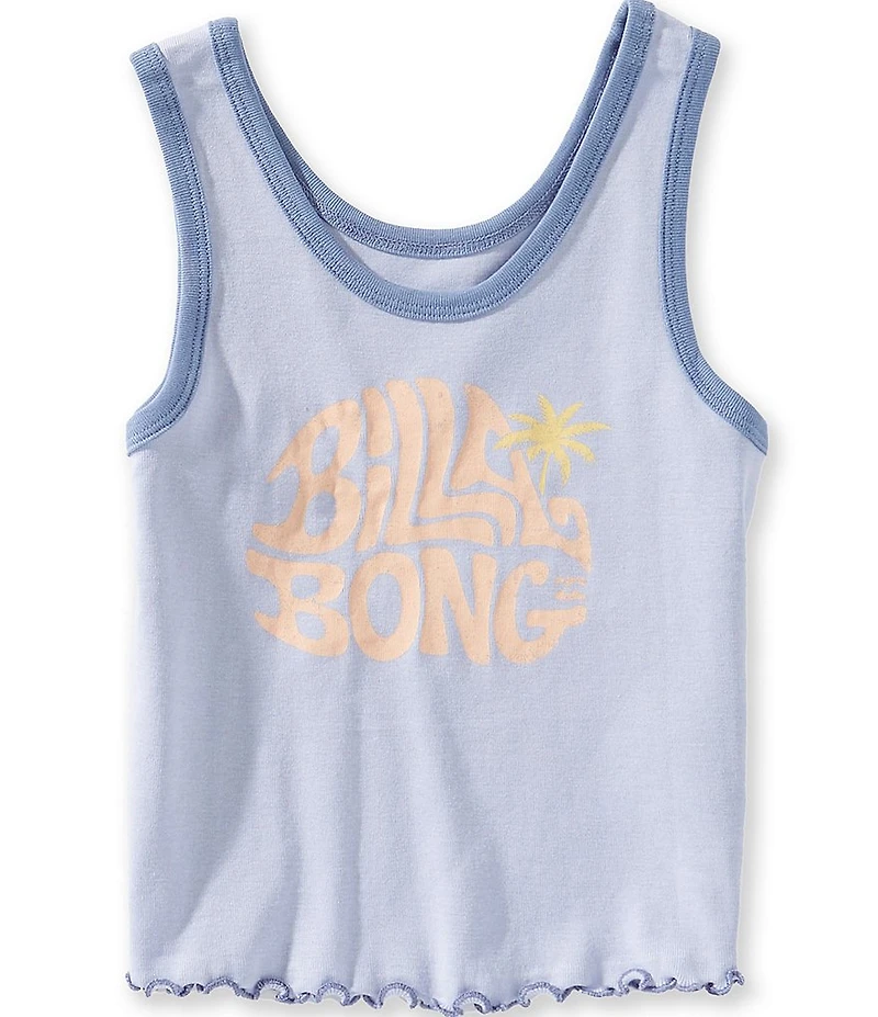 From Billabong, this tank top features: Contrast binding at the neckline and arm openings Sleeveless styling Stacked "Billabong" logo, icon logo detail and small palm tree screenprint on the front Lettuce edging at the hem Pullover styling Cotton Machine wash/tumble dry Imported.