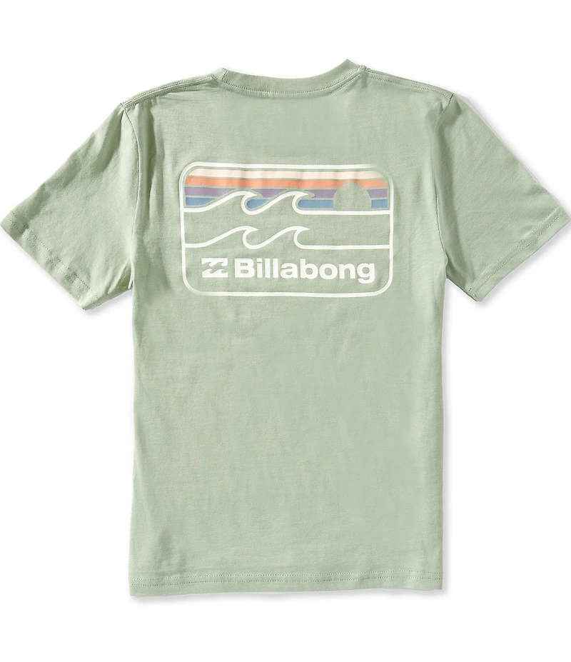 From Billabong, this T-shirt features: Crew neckline Short sleeves Rectangular-shaped graphic with center "Billabong" logo and icon logo detail on the front and back Side seam flag label Pullover styling Regular fit Piece-dyed cotton jersey Machine wash/tumble dry Imported.
