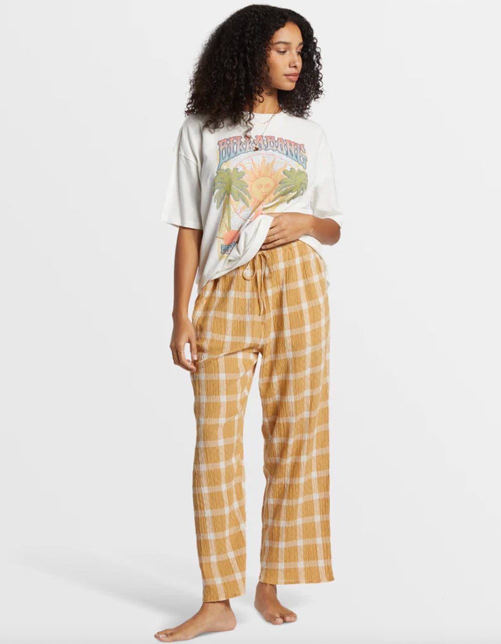 BILLABONG Plaid Out Womens Elastic Waist Pants - HONEY