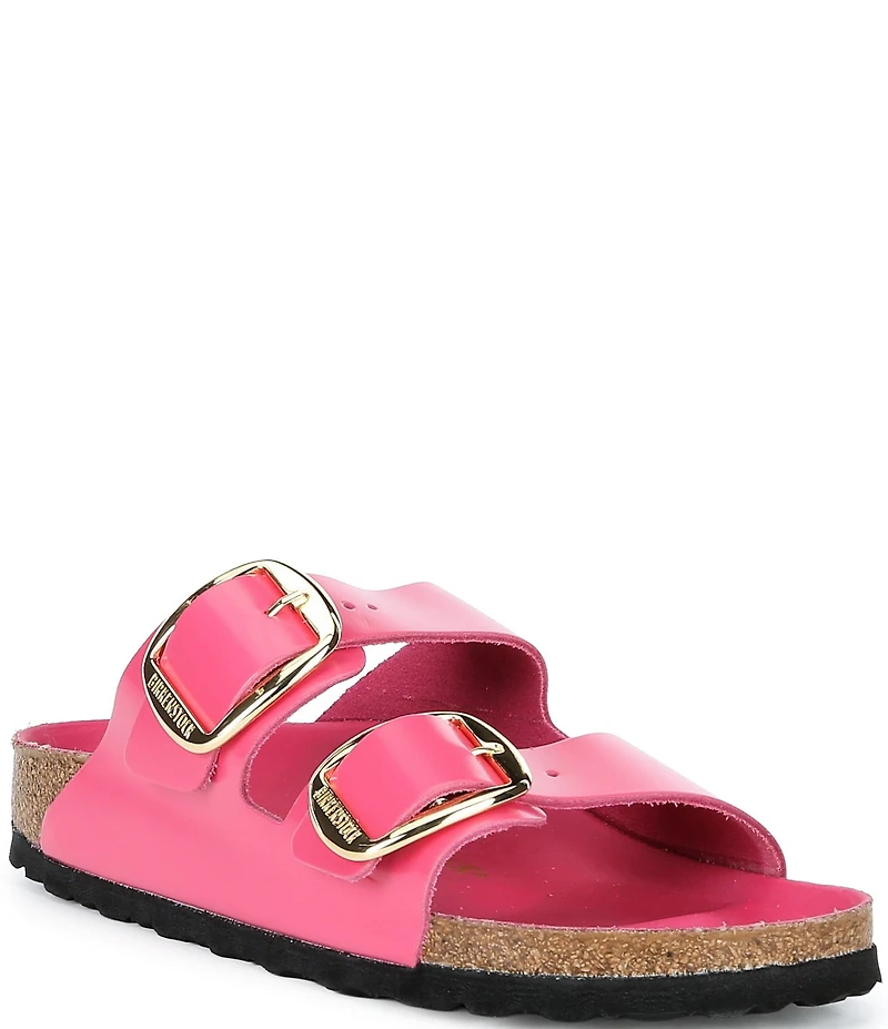 From Birkenstock, the Women's Arizona Big Buckle Hardware High Shine Slide Sandals feature: High-quality natural leather with a high shine finish Slip on design with dual adjustable buckles Leather footbed lining Classic contoured cork footbed supports the arches of the foot Deep heel cup for all day comfort EVA outsole Flat heel An exclusive early launch with Dillard’s and BIRKENSTOCK® Imported. Sizing Notes: Birkenstock footwear is made in European whole sizes. The style selected is a Birkenstock narrow footbed that will fit most medium feet.