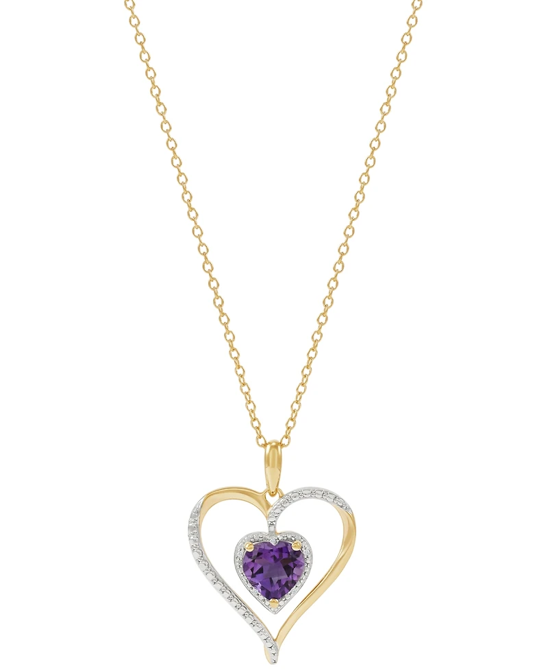 Birthstone Gemstone & Diamond Accent Heart 18" Pendant Necklace 14k Gold-Plated Sterling Silver