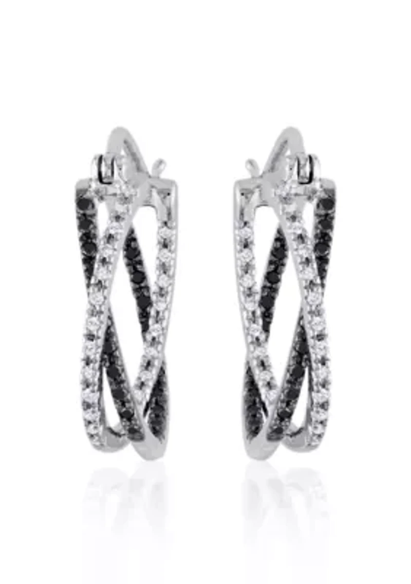 Black and White Diamond Hoop Earrings in Sterling Silver