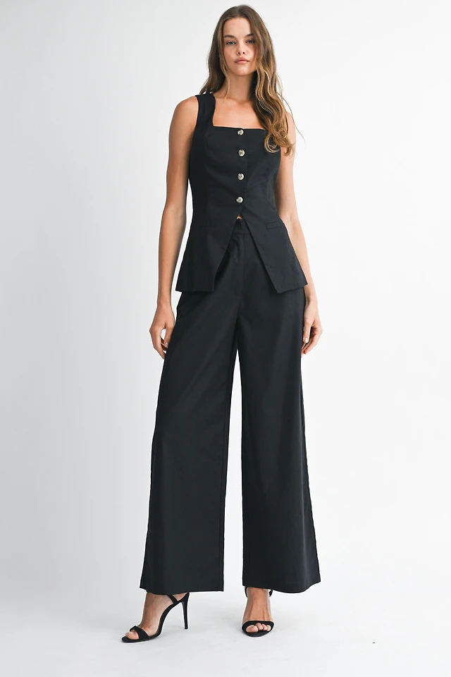 Black Button Down Top & Pant Set
