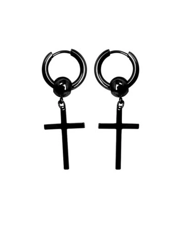 Black Cross Dangle Huggie Hoop Earrings - 18 Gauge
