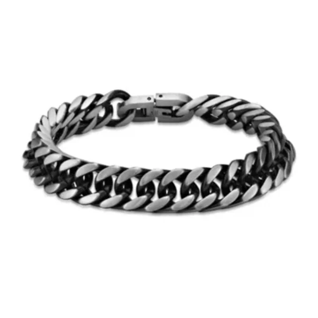Stainless Steel 11 Millimeter Curb Chain Bracelet with Black Ion Plating, 8 Inch