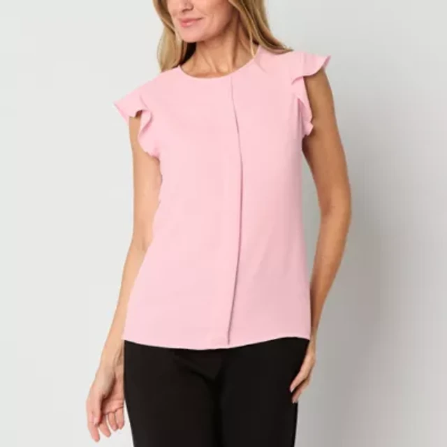 Black Label by Evan-Picone Womens Crew Neck Sleeveless Blouse