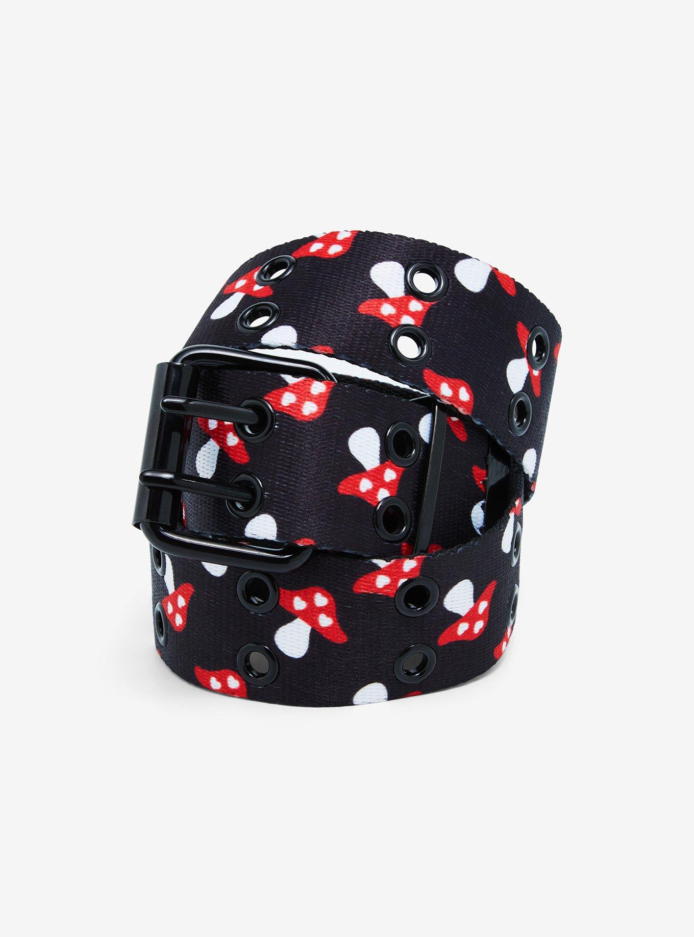 Black Mushroom Print Grommet Belt