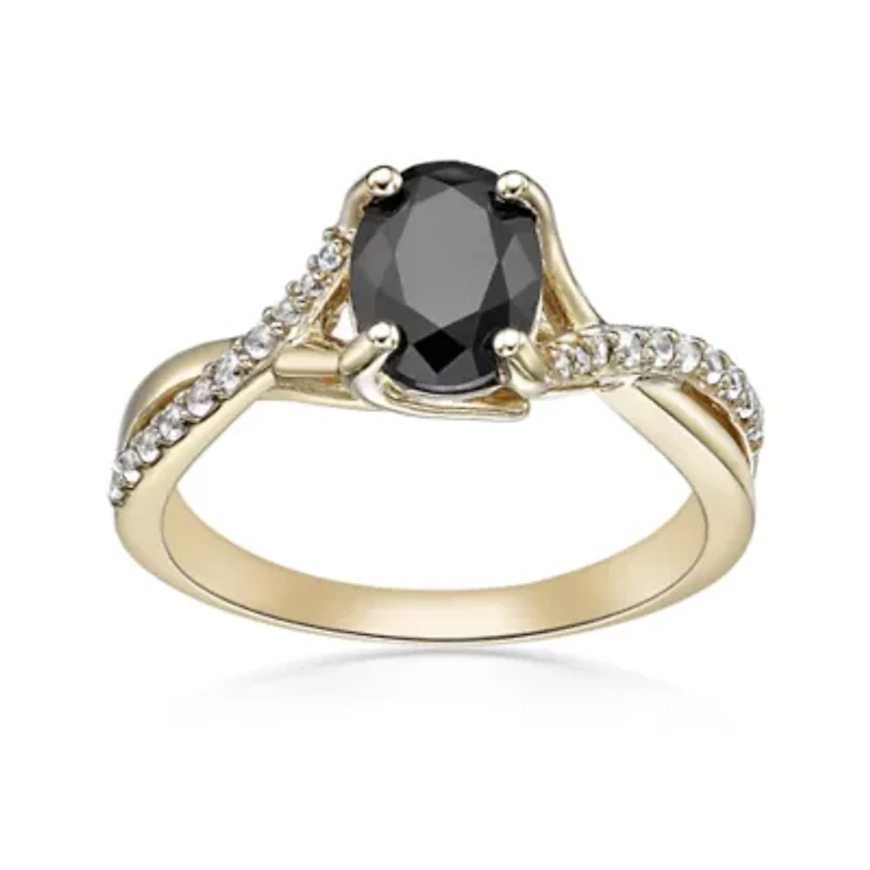 Enhance your look with this Gemminded ring, featuring a striking oval black onyx center accented by sparkling lab-created white sapphires. Crafted in sterling silver with 2-micron 18K gold plating, the polished split-shank design exudes timeless elegance and radiant contrast—perfect for any occasion. 21 Polished finish Prong setting Thailand Imported Product Specifications 8mm 1.16 Material & Care Metal, Gold plated Use silver polishing cloth on silver items.