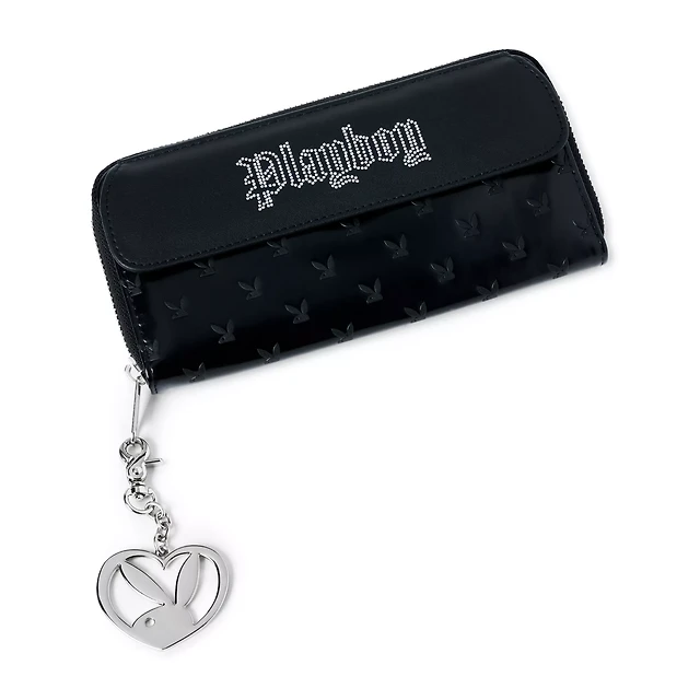 Black Playboy Bunny Embossed Rhinestone Zip Wallet