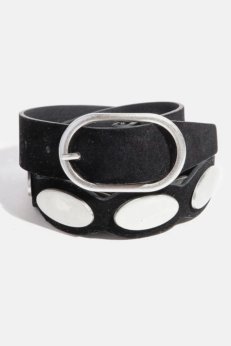 Black & Silver Oval Accent Suede BeltBlack & Silver Oval Accent Suede Belt