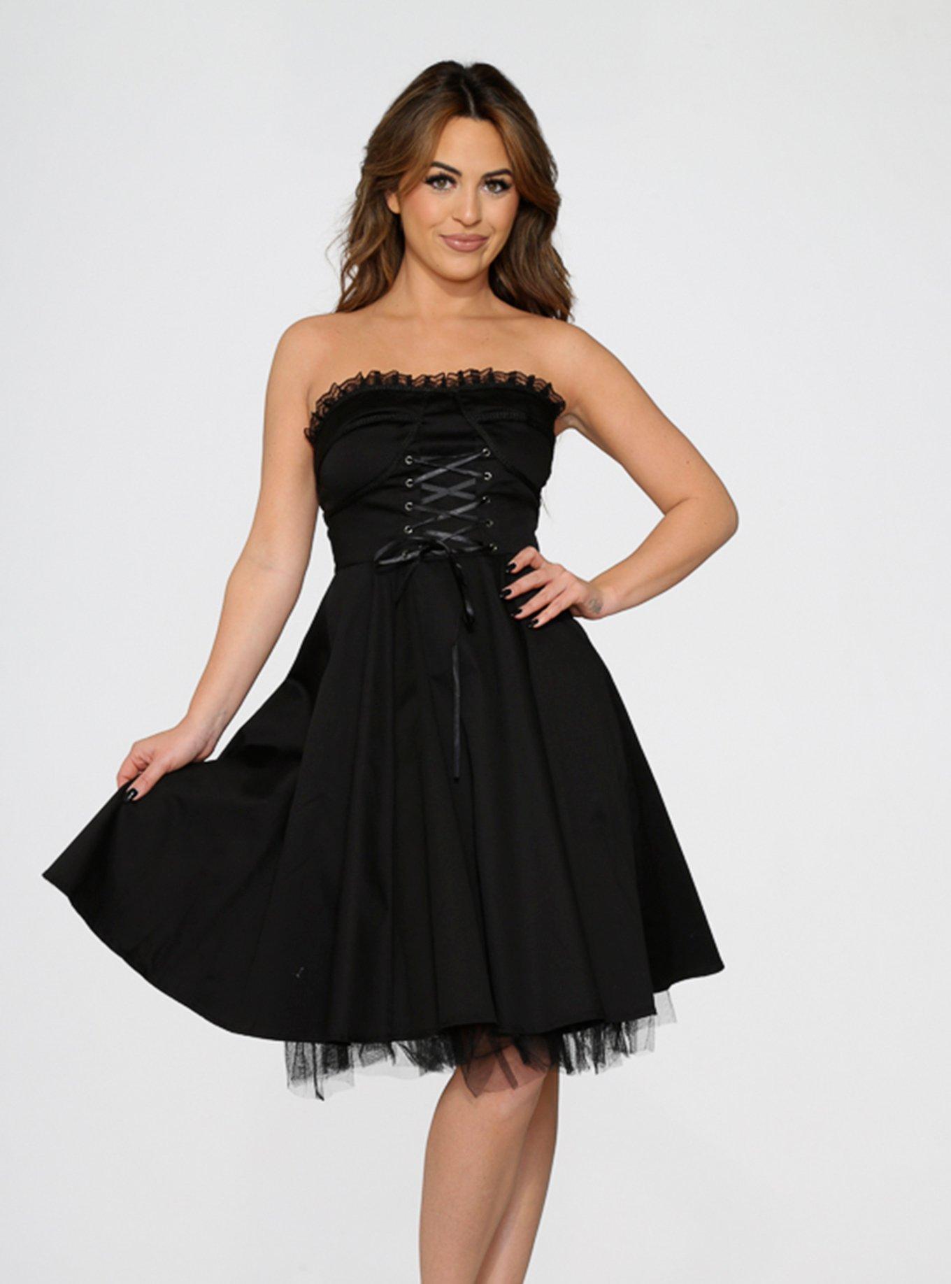Black Strapless Lace Up Front Dress