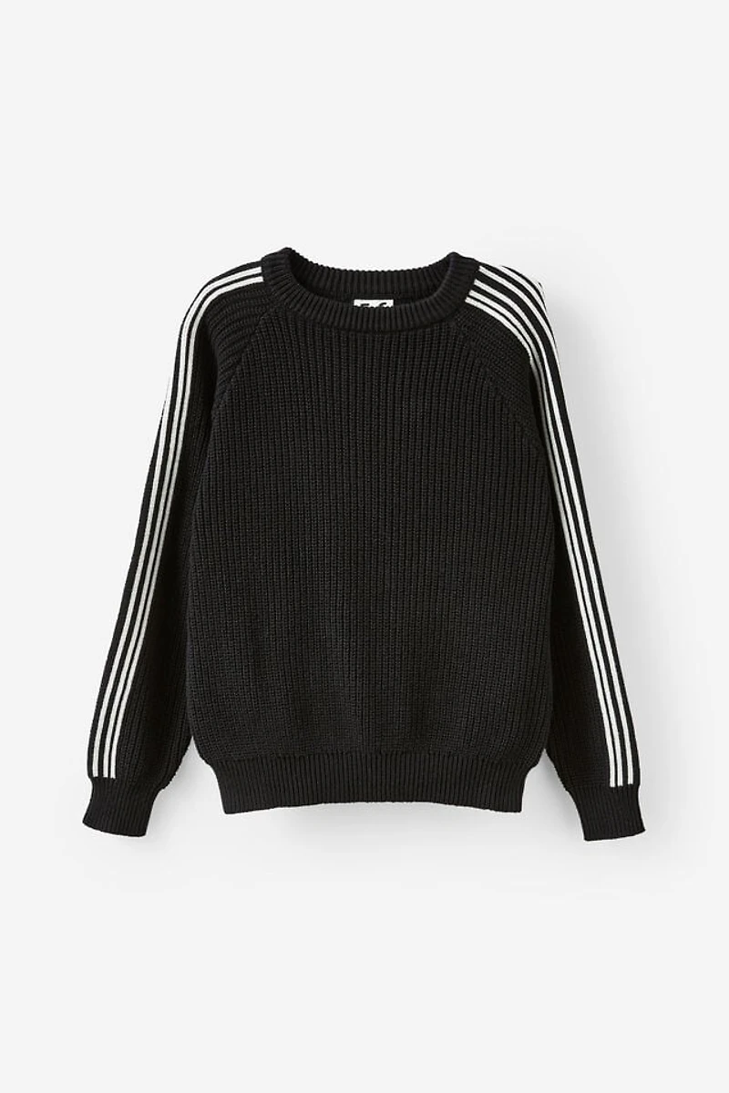 Instantly cool, easy layers. The Blake Knit Crew is a relaxed knitted jumper with a crew neck, rib neckline and cuffs, and a cool cotton feel that's soft enough to keep them comfy while they play. Featuring classic black and white stripes that go with everything. Pair it with their favourite jeans for an easy everyday look. This top really can do and go with everything.