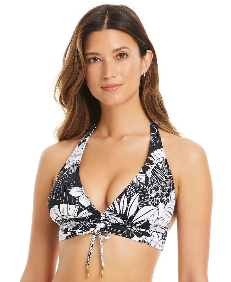 Make a sporty splash with this Bleu by Rod Beattie swimsuit top, designed as a halter bra with removable cups for versatility. A braid detail adds a textured, stylish accent to this functional piece.