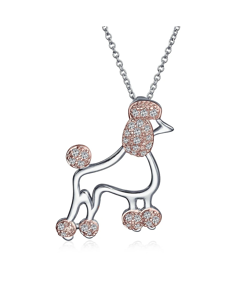 Bling Jewelry Animal Lover Pink Cz Pet Dog Elegant Poodle Pendant Necklace 925 Sterling Silver