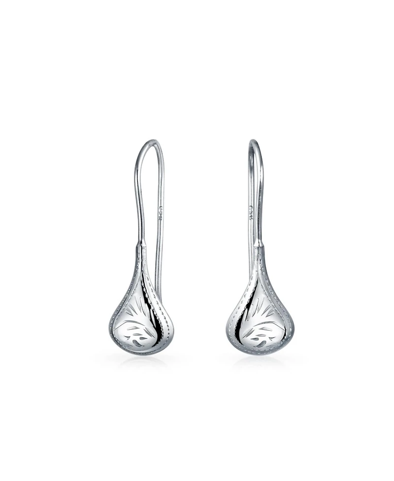 Bling Jewelry Carved Etched Puffed Pear Shaped Rain Drop Teardrop Earrings Fishhook Sterling Silver in Franklin, TN