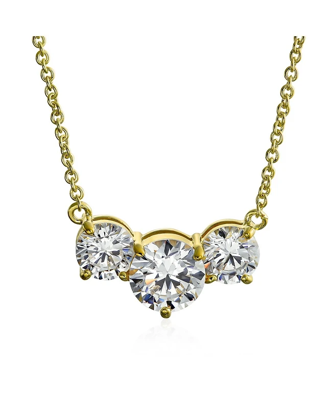 Bling Jewelry Classic Delicate Cz 2CTW Three Stone Past Present Future Solitaire Cubic Zirconia Necklace Gold Plated